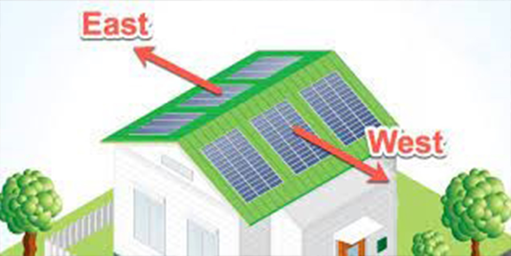 Using east west orientation allows the panels in the east to capture the rising or morning sun and the west to capture the setting sun and at mid-day , they capture both simultaneously.